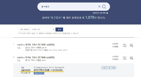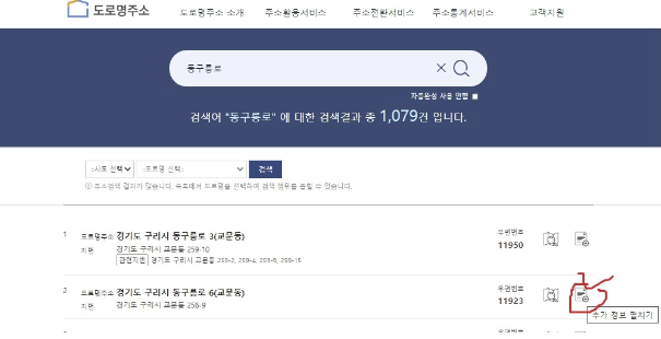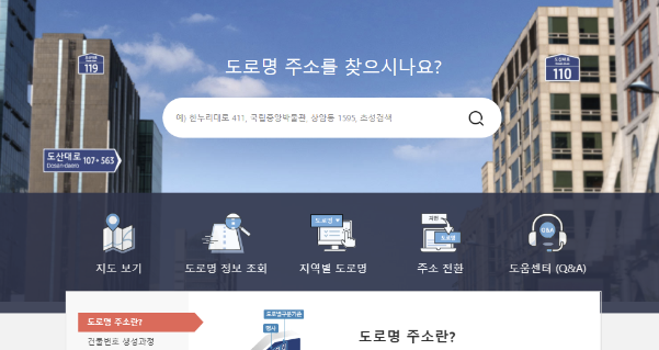 1. 도로명주소 찾기 사이트에 가서 도로명 주소를 찾습니다.