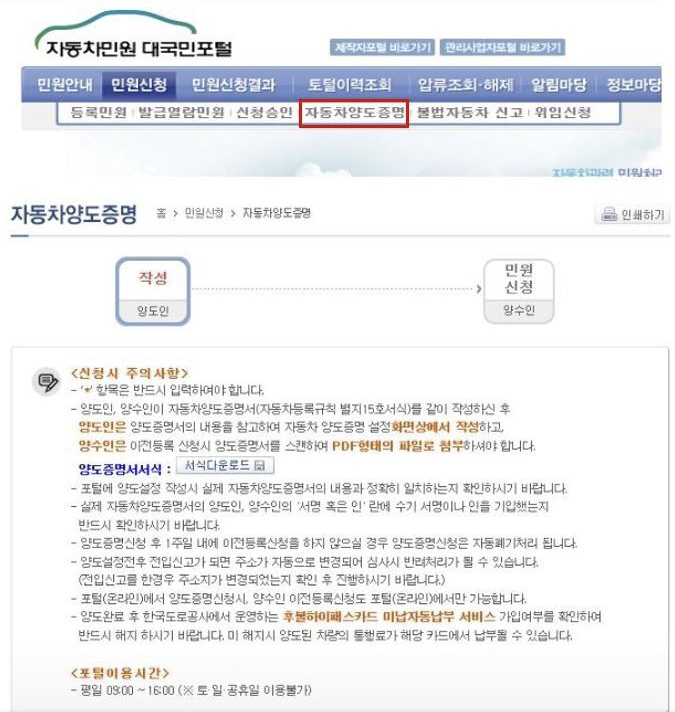 온라인 자동차 명의이전 방법은 다음과 같습니다.