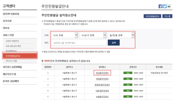 - 인터넷 무인발급기 위치 확인 방법