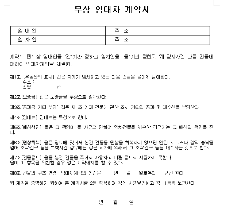 무상임대차계약서 의미 및 작성법 알아보자(양식 다운로드 링크 포함)