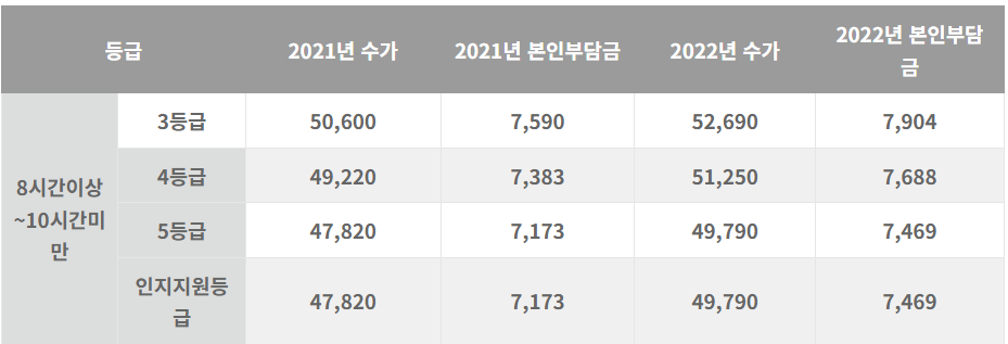 수익 계산을 위해서는 먼저 수가(1인 등급 및 시간에 받는 비용)와 등급별 월 한도액을 먼저 확인해야하는데요.