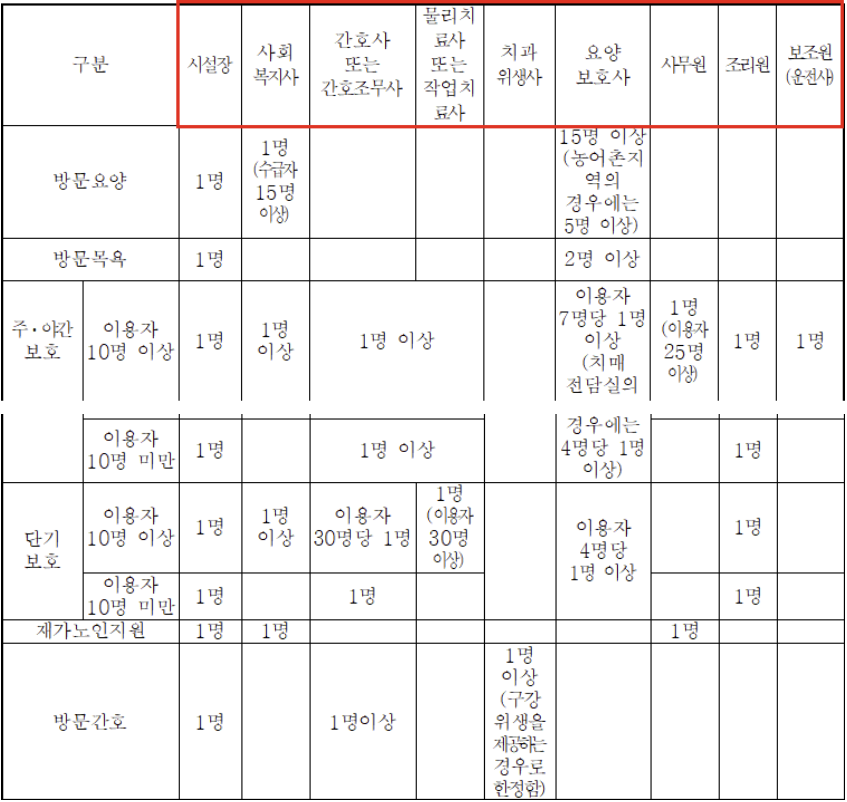 또한 노인주간보호센터를 창업하기 위해서는 충족시켜야할 최소 인원이 있는데요.