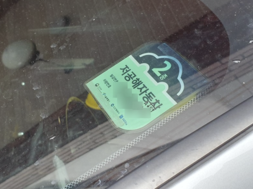저공해 자동차 여부를 표시해 주는 스티커로써 저공해 자동차 표지를 교부받은 자는 자동차의 앞 유리 내면 좌측 하단부 또는 뒤 유리 내면 우측 하단부에 부착하여야 함..이라고 하여 출차 전 주차장에서 바로 부착했다. 저공해 자동차 스티커 발급 완료!