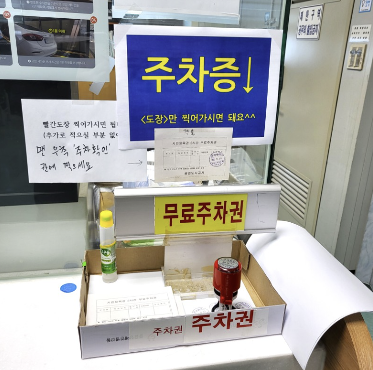 무료 주차권은 9번 창구 바로 옆에서 셀프 도장!