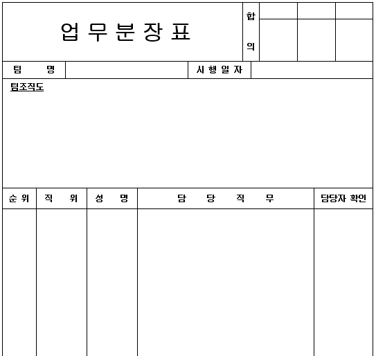 업무분장표 양식 다운로드는 아래 첨부파일을 클릭하시면 됩니다.