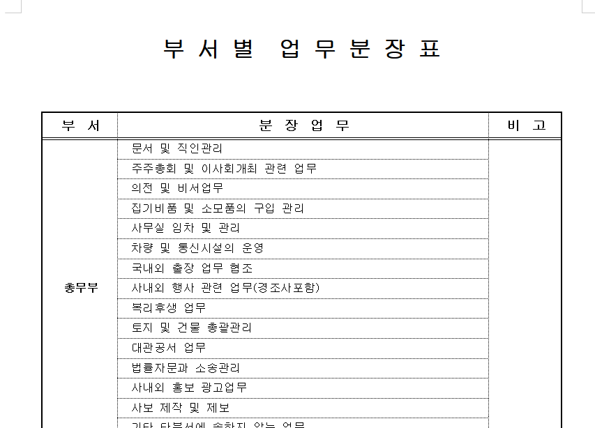 다음 글 주제는 부서별 업무분장표, 조직도 및 업무분장표 입니다. 감사합니다.