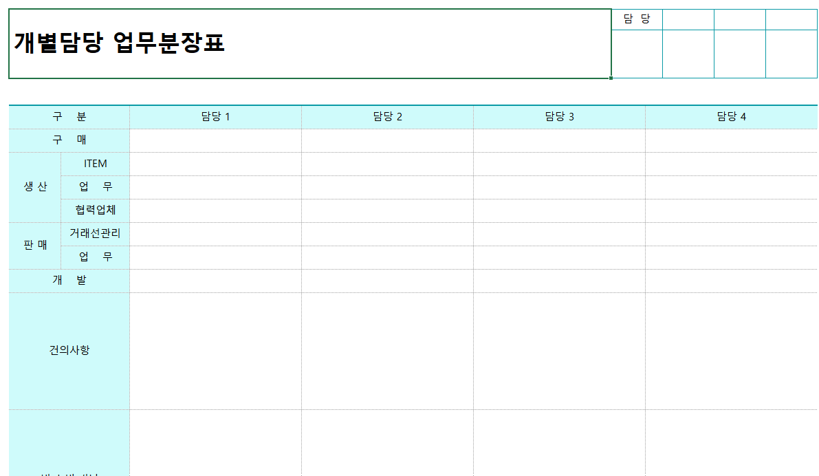 > 개인 업무분장표 ppt