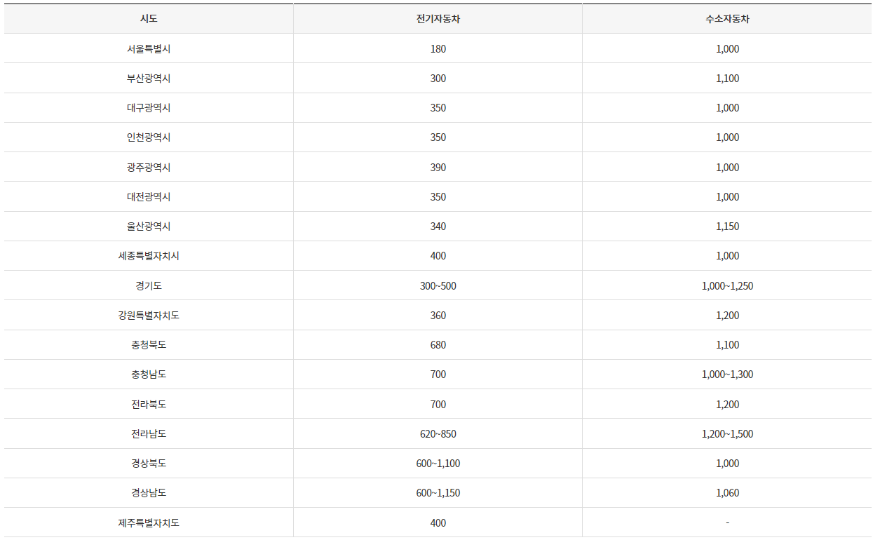 2023년 기준 지자체 전기차 보조금은 다음과 같습니다. 수소자동차 보조금도 포함하고 있으니 참고하시길 바랍니다.