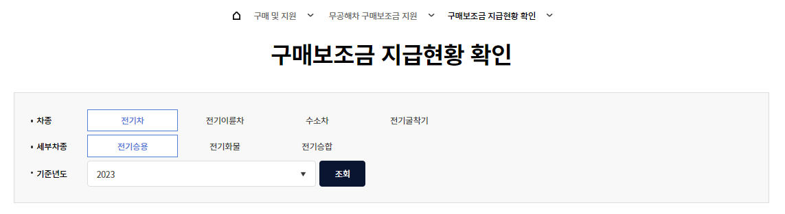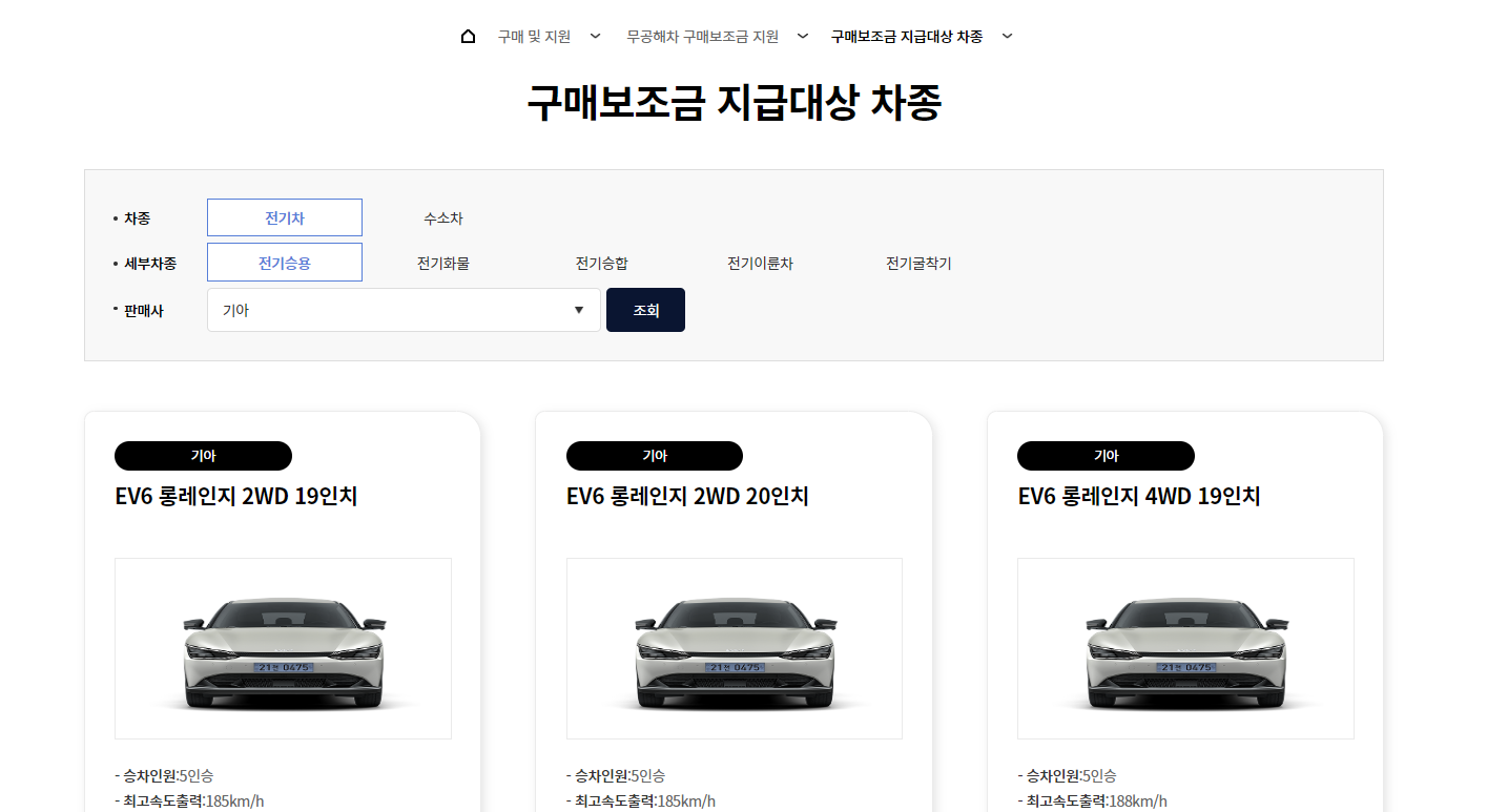 - 보조금 지급대상 차종 조회 방법