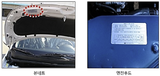 1. 일단 차량에 부착되어있는 표지판을 통해 인증번호를 확인하셔야 합니다. 다음 사진과 같이 본네트를 열었을 때 상판 아래쪽에 부착되어 있거나 엔진 후드에 부착되어 있습니다.