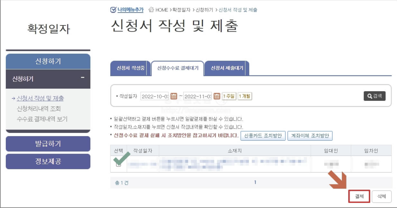 4. 한번 더 클릭하시고 정보를 입력하면 확정일자 신청하기가 완료됩니다.