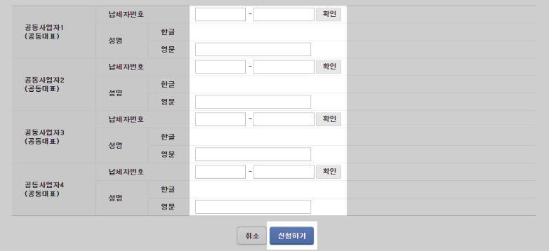 6. 공동대표가 있다면 아래에 입력한 후 [신청하기]를 눌러줍니다.