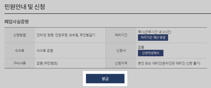 추가로 오프라인 상에서 폐업사실증명원 세무서 발급도 가능하니 참고하시길 바랍니다.