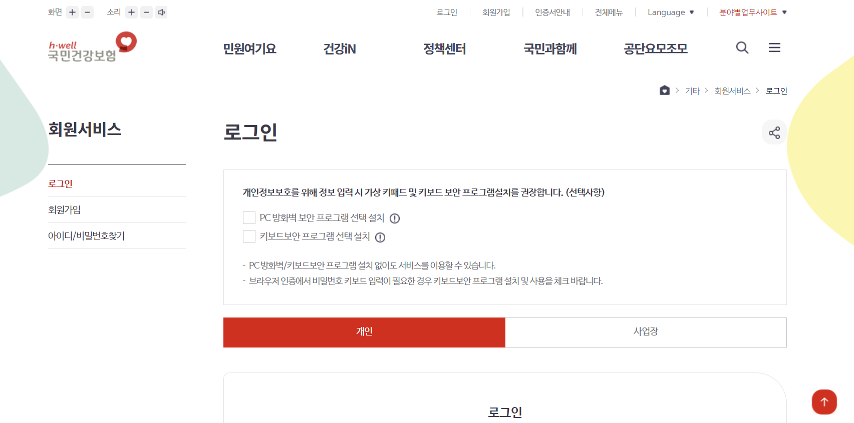 하단 링크를 클릭하시면 국민건강보험공단 사이트에 접속하실 수 있습니다.