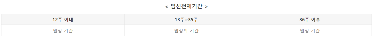 임신 전체 기간 중 12주 이내(임신초기 단축근무), 36주 이후(임신후기 단축근무)는 법정 기간이고 13주~35주는 법정 외 기간으로 산정이 됩니다.