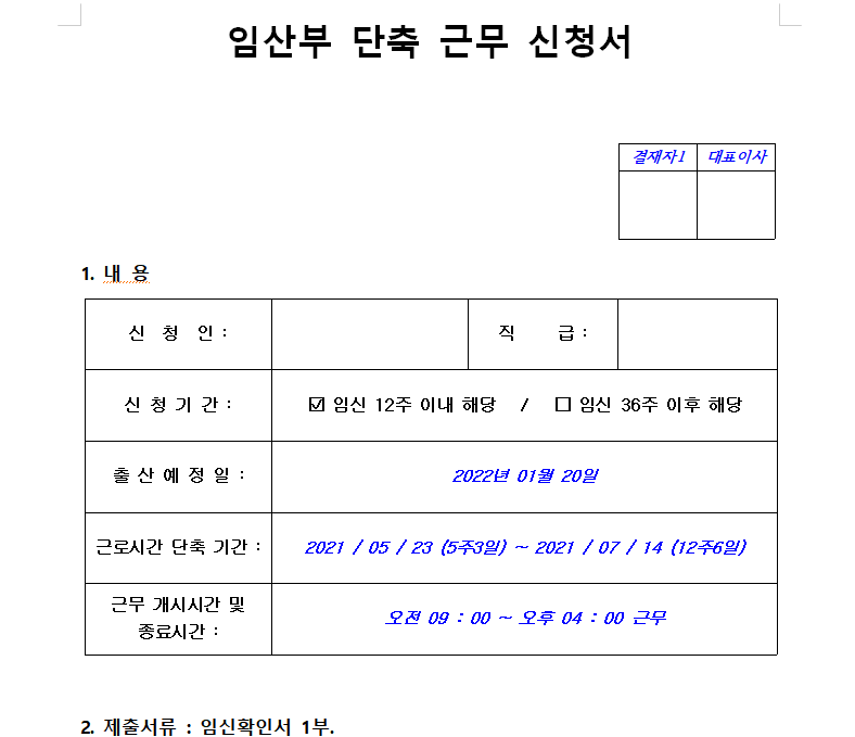 임산부 단축근무 신청서 양식은 아래와 같습니다.