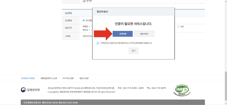 9. 인증 팝업이 나온 후 신청 완료가 됩니다.