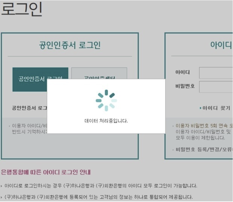 1. 하나은행 인터넷뱅킹 사이트에 접속합니다.
