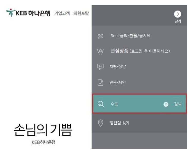2. 메인화면이 나오면 화면 우측에 있는 검색창을 이용하여 [수표]로 검색합니다.