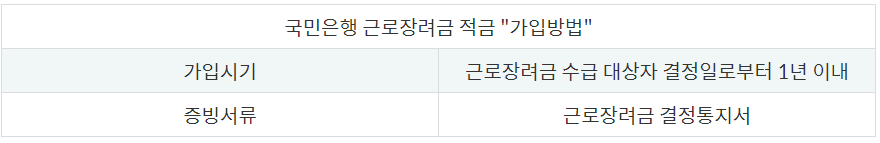 근로장려금 수급 대상자 결정일로부터 1년 이내에 신분증과 증빙서류(근로장려금 결정통지서)를 지참하여 KB국민은행 영업지점에 내방하여야 합니다.