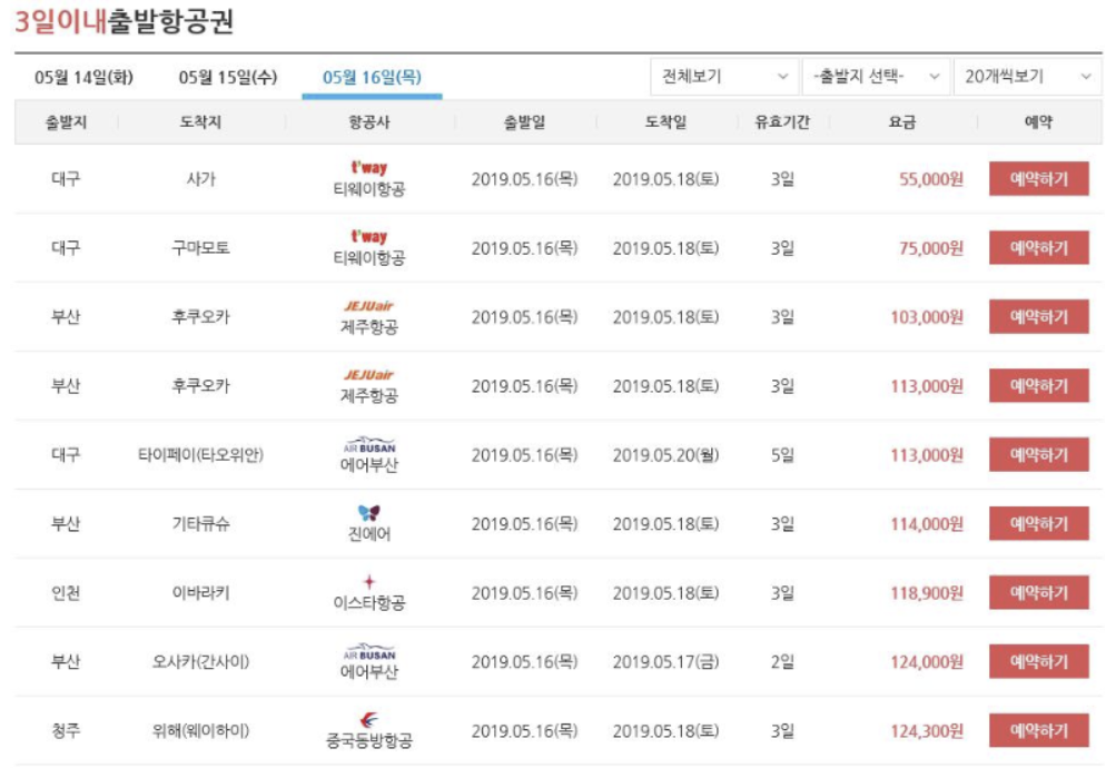 최소한 출발하는 날의 태풍의 예상 경로가 나올 때까지 기다리면서, 혹시나 땡처리 항공권이 나올까 싶어서 검색도 열심히 했습니다.