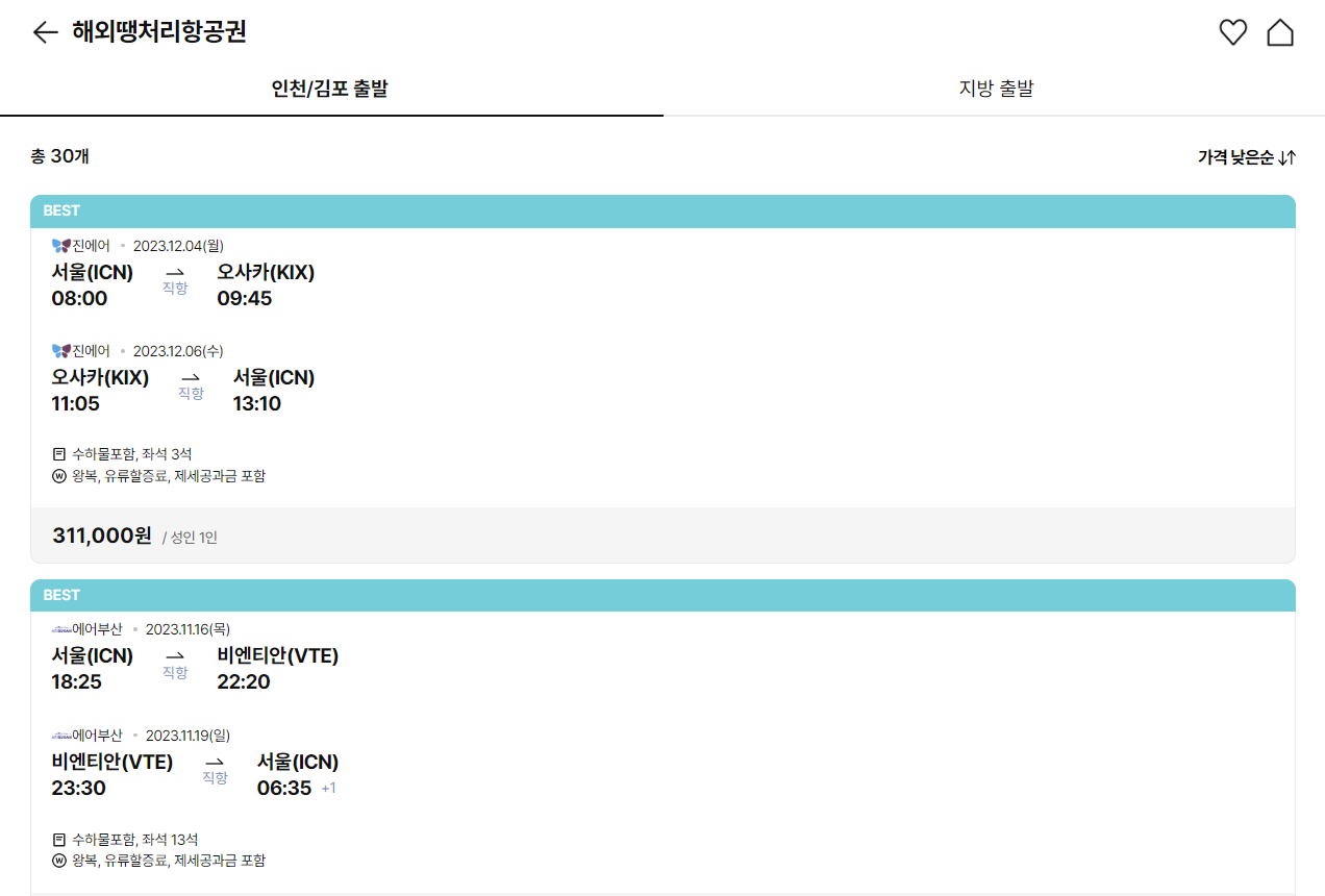 1. 땡처리 항공권
