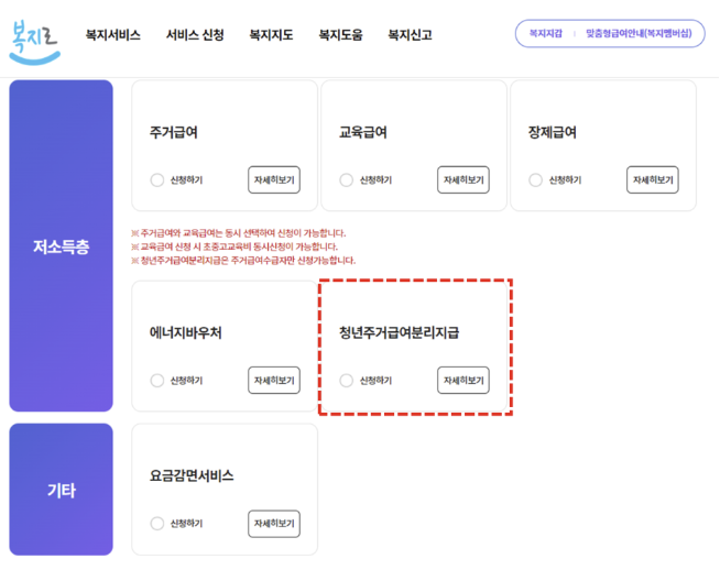 청년 주거급여 분리지급 해당 여부 확인 방법