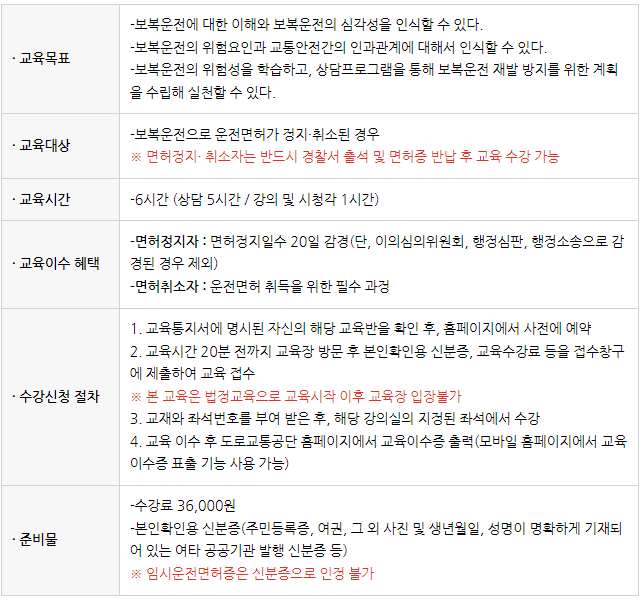 - 운전면허 정지자 2차 교육과정(현장참여교육)