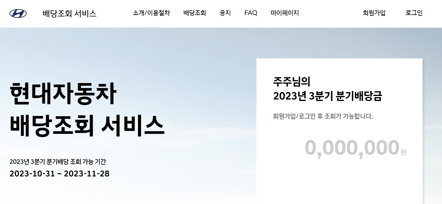 하단 링크를 클릭하시면 현대자동차 배당조회 서비스 에 접속하실 수 있습니다.