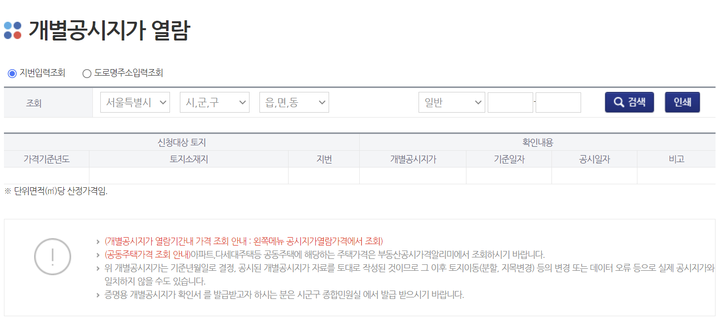 국토교통부 공시지가 조회 방법