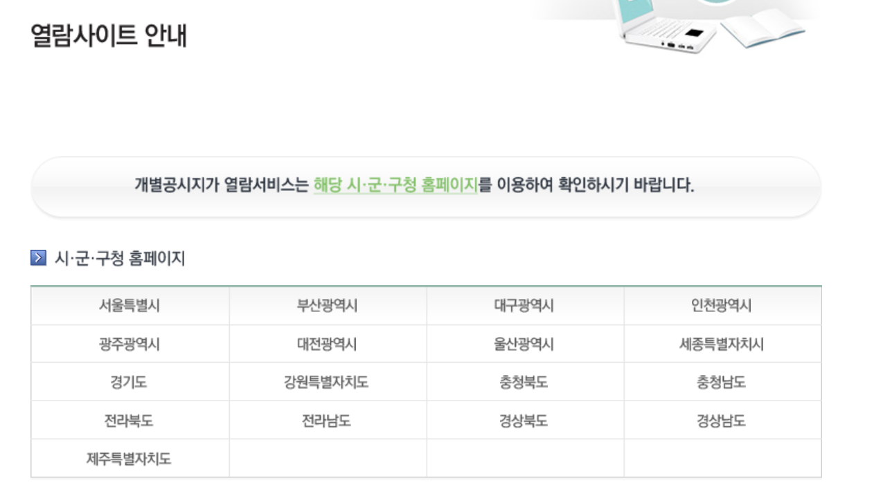 3. 공시지가 알리미 사이트에서 모든 개별 토지의 공시가격을 직접 조회할 수는 없고, 지역별 사이트로 다시 이동해야 하는데요. 공시지가 알리미 사이트에서 지역을 선택하면 각 지역 부동산정보 조회 시스템 화면으로 들어오게 됩니다.