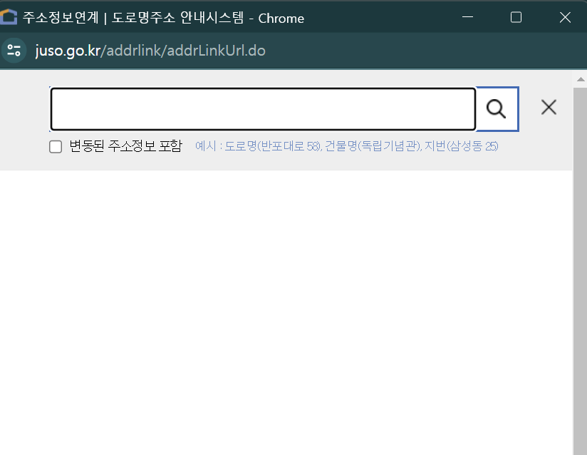 5. 도로명주소입력을 클릭하면 도로명주소 안내시스템이 나오고, 별도의 창에 주소를 입력하는 방식입니다.