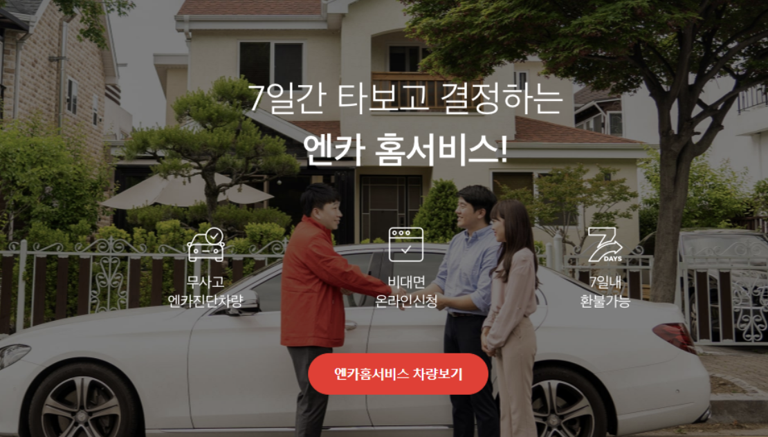 케이카에도 비슷한 서비스가 존재하고 있는 것으로 알고 있는데 제가 구입하고 싶은 차량 매물이 없었기에 엔카홈서비스를 이용했지만 만족도는 최상이었습니다.