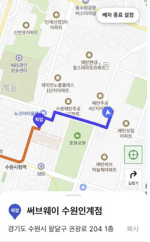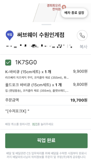 매장에서 음식을 픽업하고, 배달지로 향하면 된다.