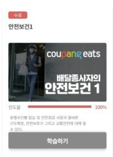 쿠팡이츠 교육을 이수하고 그 정보로 배Min을 인증하는 루트로 두 개를 한번에 해결할 수 있었습니다.