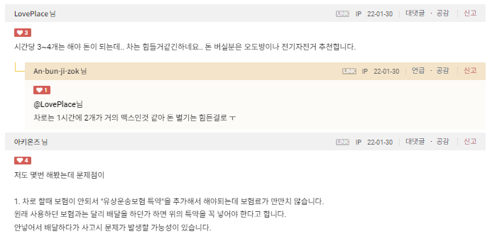 '경차' 까지는 그래도 부업으로 적당한 효율을 뽑을 수 있다고 생각한다.