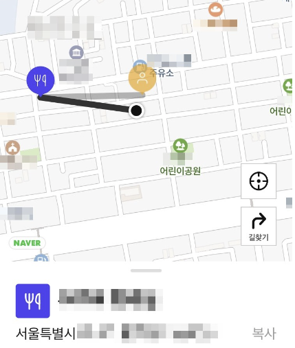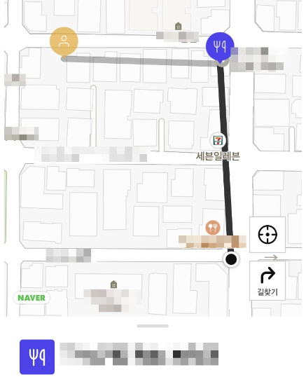 길찾기 버튼을 눌러서 길안내를 받아 매장으로 간다.