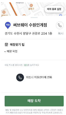 매장에 도착하면, 쿠팡이츠 배달파트너 어플에 '매장 도착'을 클릭한다.