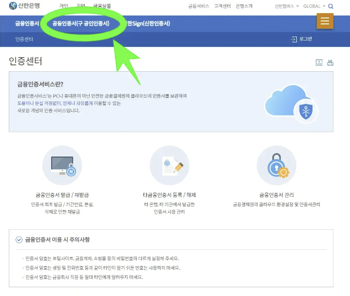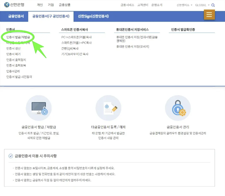 신한은행 공인인증서 발급 방법