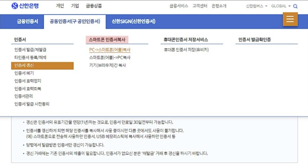 신한은행 공인인증서 복사 방법