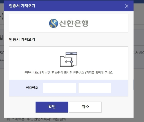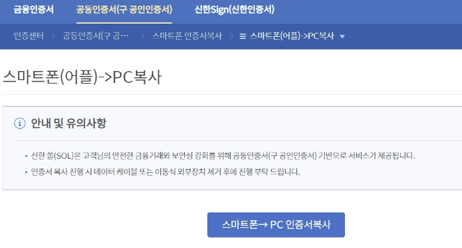 모바일에서 PC로 신한은행 인증서 가져오기