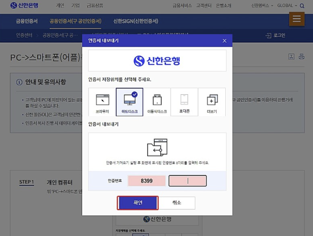 PC에서 모바일로 신한은행 인증서 가져오기