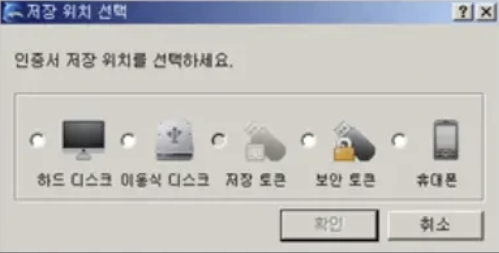 3. 브라우저, 하드디스크, 이동식디스크 중 인증서 저장위치를 선택합니다.