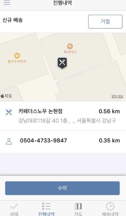 수락해서 음식 픽업해야 도착지 보여주고 단가는 완료쳐야 보이는듯?