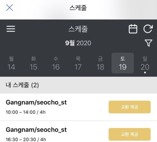 거기서 선택가능한 스케줄을