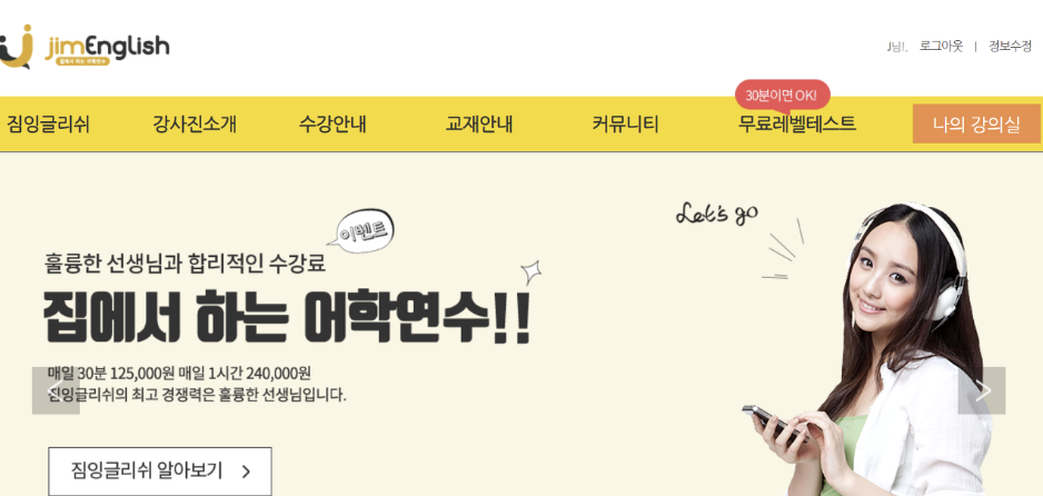 사실 전에는 구에서 지원해주는 화상영어를 했었는데 생각보다 배우는게 많지 않아 여러 업체를 보다 짐잉글리쉬라는 곳을 알게되었다.