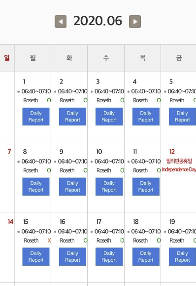 6월 1번 결석 😂 (이날 몸이 너무 안좋아서 선생님께 아침 톡으로 말씀드리고 숙제를 내주셨다)
