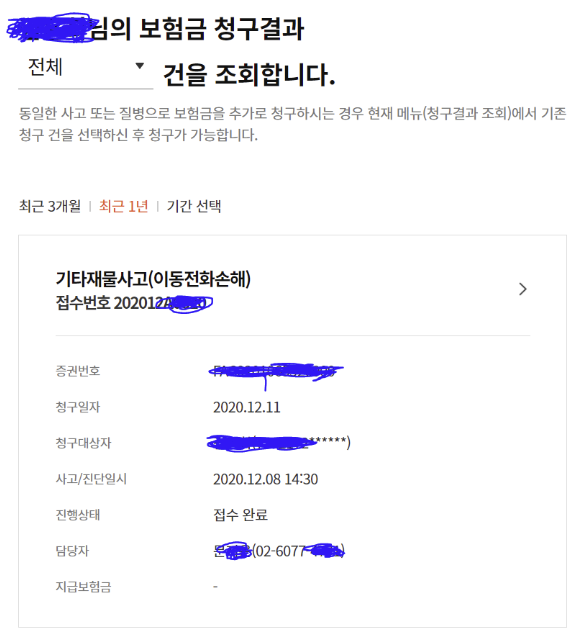10. 첨부가 완료되면 보험접수가 진행되며 담당자가 배치되고 보험금을 지급받으실 수 있습니다