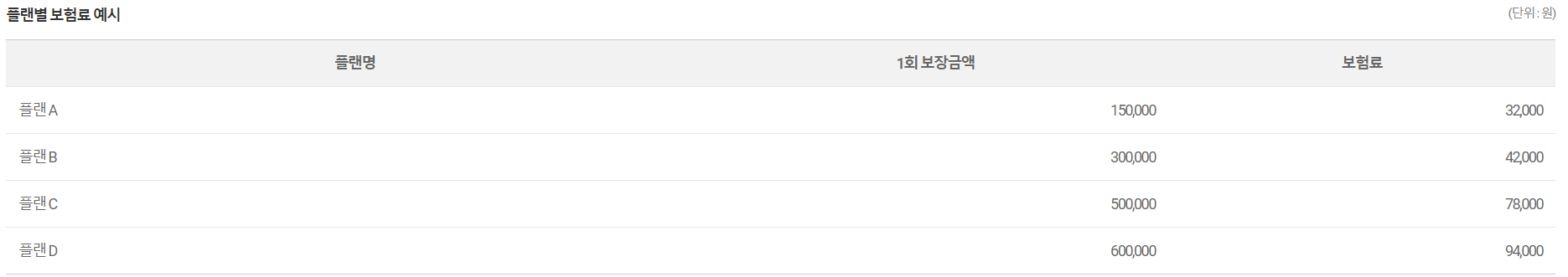 자세한 플랜별 보험료 예시는 아래 사진을 참고하시길 바랍니다.