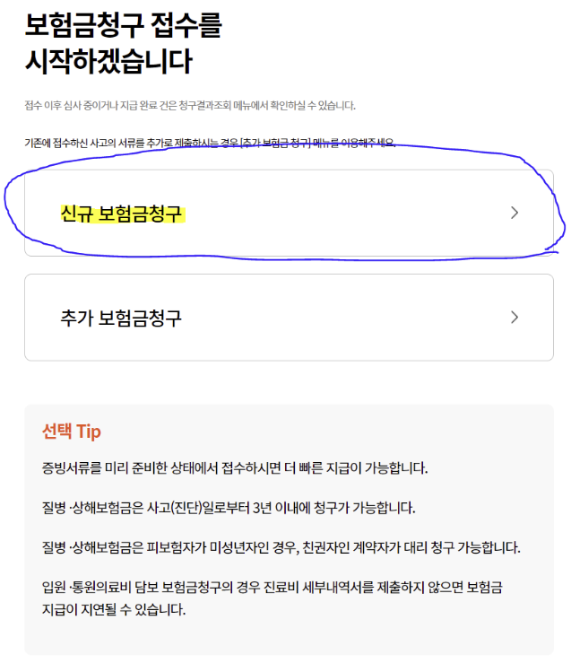 4. [신규 보험금청구] 메뉴를 클릭합니다.
